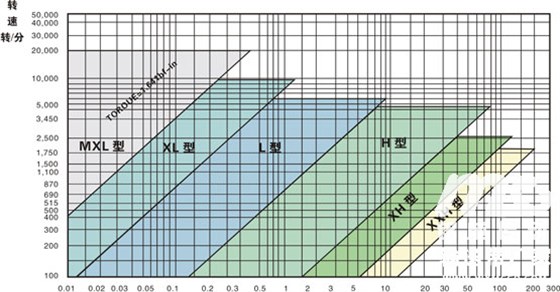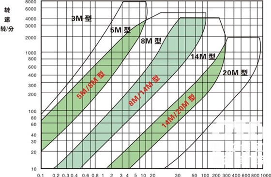 T形齒同步帶、輪選型圖