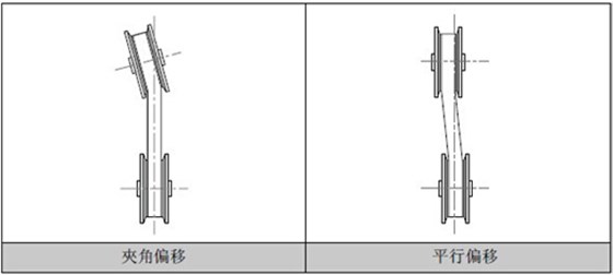 當(dāng)主,從動(dòng)輪軸線平行,但兩帶輪不在同一平面上時(shí),引發(fā)平行偏移現(xiàn)象。當(dāng)兩輪軸線不平行時(shí)即為夾角式偏移。